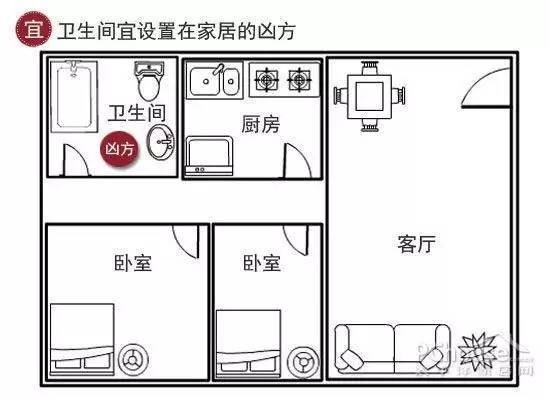 关注微信号:jia-ysdp 更多精彩内容等着你!1:位置朝向有讲究 别让卫浴安错位