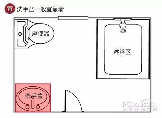 宜:洗手盆一般宜靠墙,要与马桶保持一定距离,洗手盆靠墙给人一种可靠安稳的感觉。此外,洗手盆是清洁双手的地方,靠近马桶容易让污秽之气影响到洗手的效果。