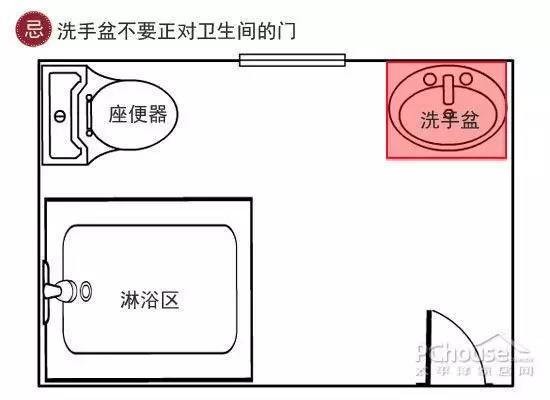 忌:镜子和马桶不要正对或靠太近。马桶作为排泄秽物之地,不必去“照镜子”,只要从在马桶上看不到镜子,照镜子的时候看不到马桶就是合理的面局了。同样,马桶与镜子太过靠近也是十分不利的。洗手盆位置宜忌:切忌正对大门