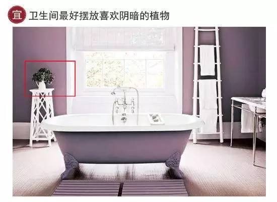 忌:避免在卫生间摆放些暗色调的摆设,暗色调的摆设,无形中加重了卫生间的污秽之感,让秽气更重。植物摆放宜忌:喜阴植物最适合