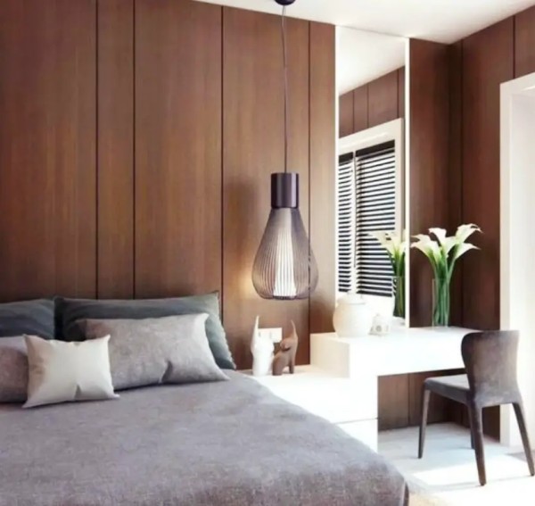 双床头柜对称的布局已经成为了过去式了,如今已经有很多的替代方式。其中一侧床头柜,另外一层作为梳妆区或者办公学习区,是较为实用的。