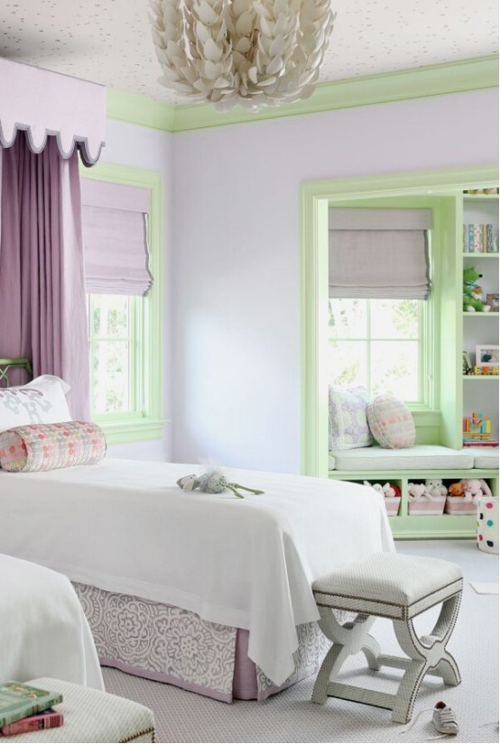 白家具+淡粉/薰衣草墙面+花卉床品+水晶灯——这些经典元素历久弥新。