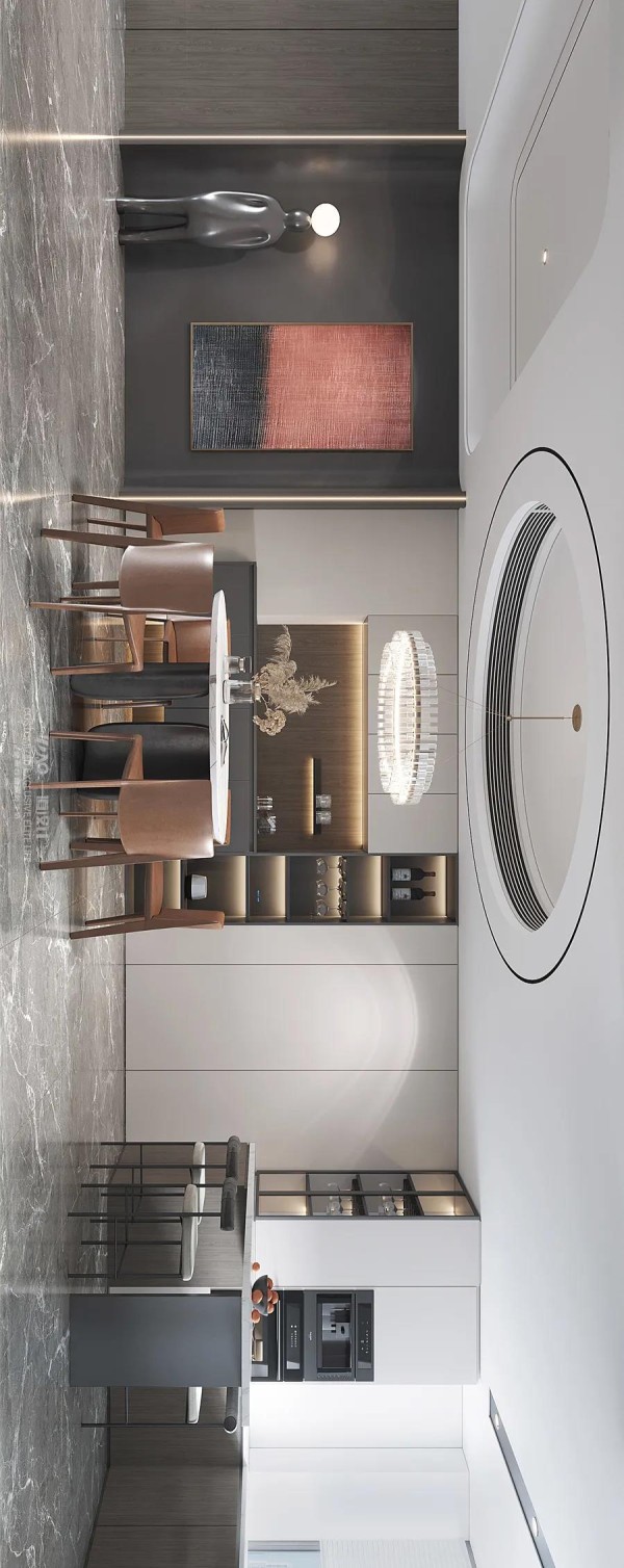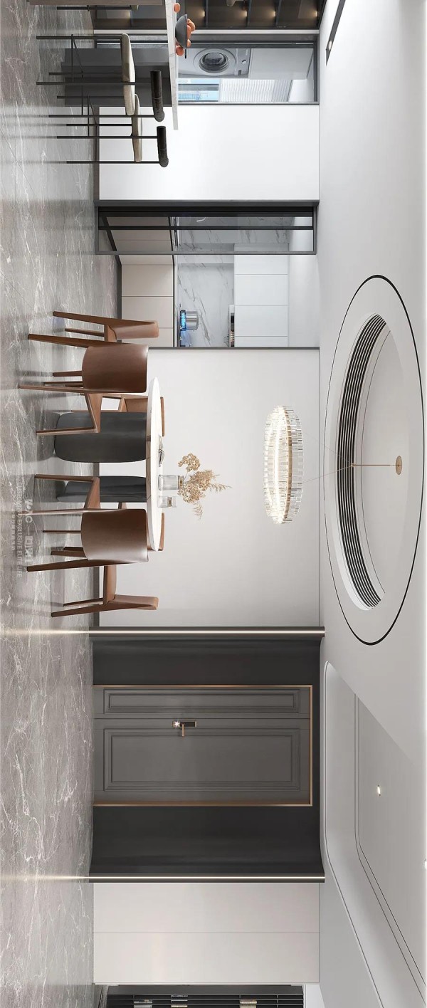 门厅采用黑色弧形包裹式设计,入户的现代时尚感更加强烈。