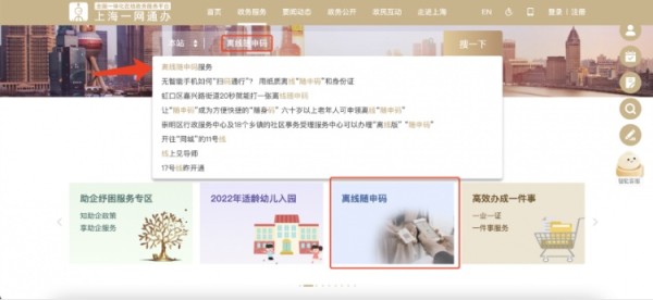 在“一网通办”平台(https://zwdt.sh.gov.cn/)政务服务首页的“特色专栏”专区找到“离线‘随申码’”图标,点击即可进入申领页面。