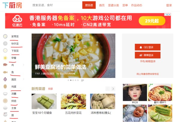 爬取上图中,家常菜,快手菜,下饭菜,早餐,鱼,鸡蛋,汤羹,烘焙,主食,面,素食,以上种类的菜谱。