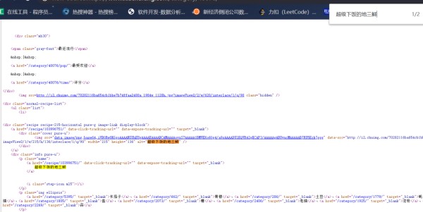 复制第一页的第一个菜谱名,右键【查看网页源代码】搜索菜谱名,可以搜索: