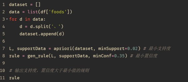 Apriori 算法是最著名的关联规则挖掘算法之一,我们使用其进行关联规则。