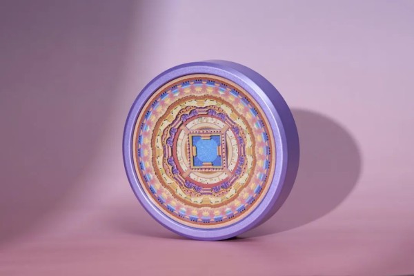 冰箱贴共分为五层,每一层都按照藻井的真实结构设计绘制。五层图案可分开摆放,也可叠起摆放,还原完整的藻井形态。底层星空还设计了夜光效果,当夜幕降临,星空部分会发出柔和的光芒。