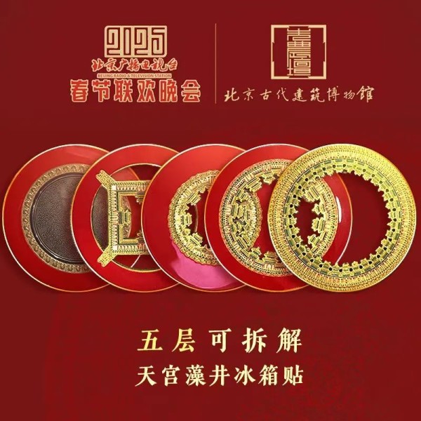该产品以彩色浮雕形式的旋转冰箱贴,体现北京古代建筑博物馆的藻井之精美。
