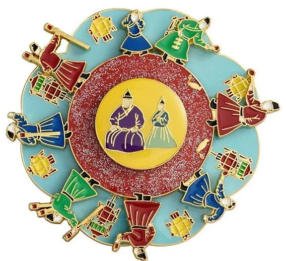 这款旋转冰箱贴巧妙地将《宪宗元宵行乐图》中宫人、童子放爆竹的场景动态呈现,趣味十足。人物的动作细腻生动,带您感受大明宫苑里的热闹元宵景。
