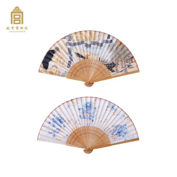 设计灵感来源于文徵明的《兰亭修禊图》,再现了文人士大夫曲水流觞的场景。细笔小青绿画法,表现了树林葱郁,修竹傍水的春日美景。扇面呈现出现代美学与古典韵味相结合的逸致雅风,既具有装饰美感,又富有实用性。