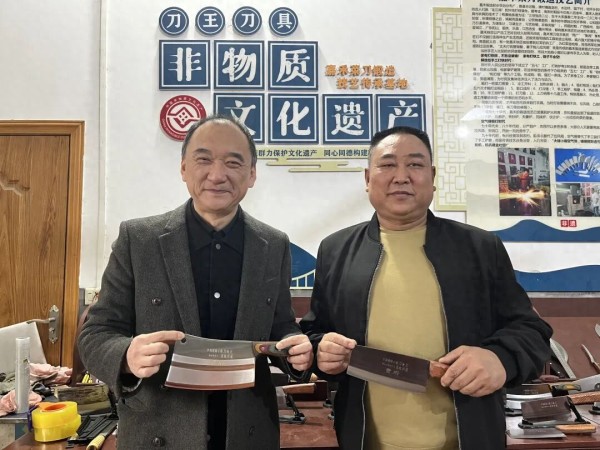 千百年来,嘉禾人凭借对锻造工艺的执着,传承并塑造着他们的“钢铁人生”。提起嘉禾菜刀,就不得不提被誉为“刀王”的黄吉生先生。11月12日,联合国旅游组织专家、著名品牌策划人贾云峰先生在嘉禾县考察期间,与黄吉生先生进行了交流。