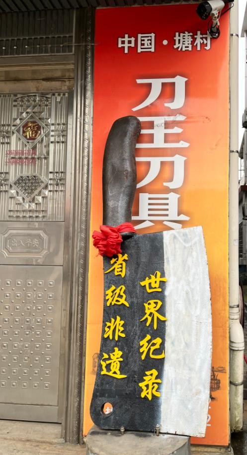 作为中国四大纯手工锻打菜刀基地之一,嘉禾菜刀锻造技艺讲究“三火九淬”,需经选料、烧火、锻打、淬火等十余道工序。比人还高的菜刀,不仅是重量之沉,更是非遗技艺的传承人几十年来的坚守与匠心。