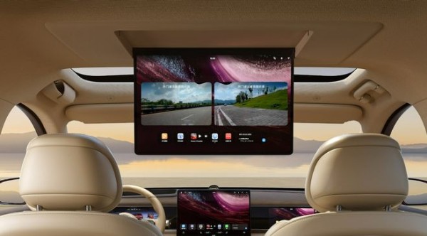 其次,在多乘员出行时,这套“屏幕矩阵”也展现出更多实用性——副驾10.25英寸专属屏和第二排17.3英寸娱乐屏拥有“下车卫士”功能,在乘客下车前自动显示车门外侧盲区,避免“开门杀”。