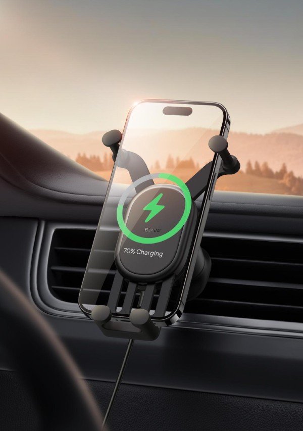 倍思稳行 Pro 重力无线充车载支架 15W,它的使用姿势就藏在名字里——重力。