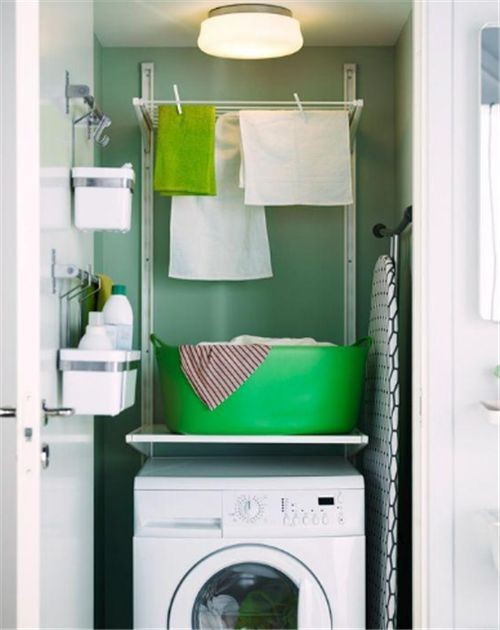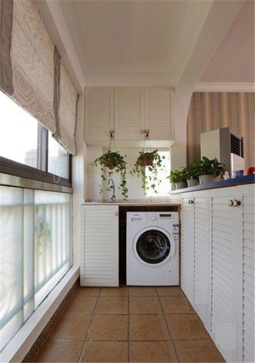 有些人喜欢把洗衣机放在阳台,阳台的下水系统好,方便排水。可以把洗衣机放在靠墙角的地方,洗衣机上方还可以打一个壁柜,方便各种东西的收纳。