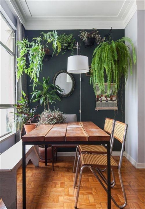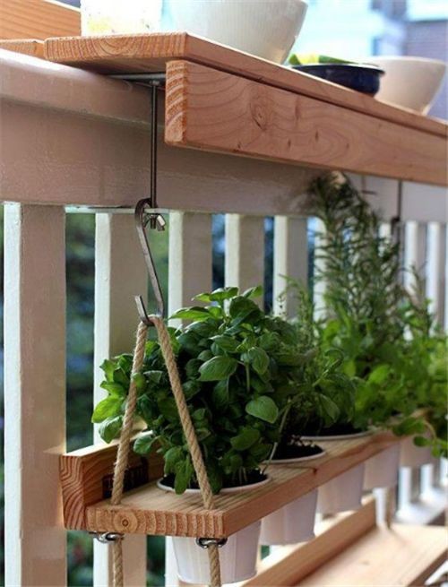 说到阳台,多数人都喜欢在这里摆放绿植,小的盆栽,放在收纳柜上就好了。壁挂篮也可以放小盆栽哦。大点的植物就靠边上放,比如放到椅子后面。