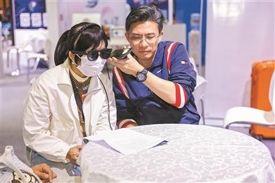 市民体验AI智能助盲眼镜。广州日报全媒体记者 李波 摄