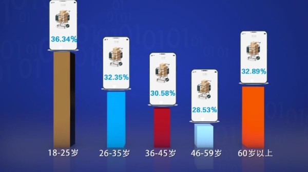最爱在手机、IPAD等移动端网购的是18-25岁的年轻人。