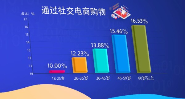 在传统社交电商购物的人群随年龄的增长,比例也有不同程度的增长。