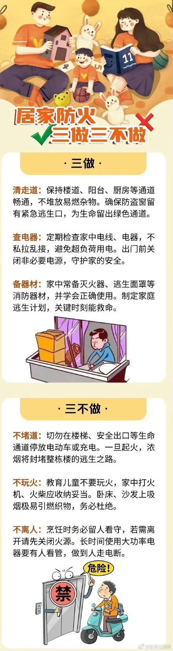 火患无情,预防为先,戳长图点开这份居家消防安全提示,上一堂家庭防火的必修课,多一份警惕,少一份危险,为家筑起防火墙。
