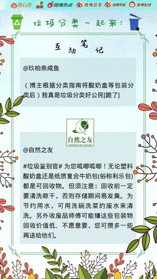 面对厨余垃圾、可回收物、有害垃圾、其它垃圾到底该怎么分?网友与@自然之友展开互动,并给出有效建议,让你再不因“到底是什么垃圾”而烦恼?