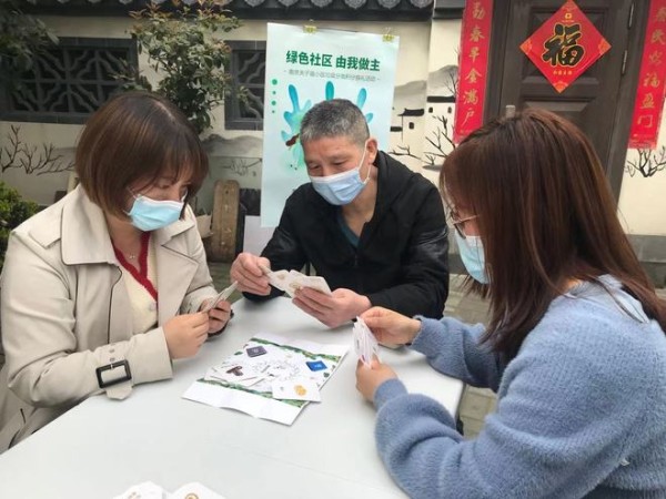 为进一步培养居民正确投放习惯,他们集团还自主开发了社区垃圾分类绿色积分体系,居民通过正确投放垃圾、在“美好街坊”app上参与分类知识竞答或参与社区线下活动,可获得绿色积分,积累的积分可在小区兑换生活用品。“每日答全5题,连续3天都答对,就可以用积分换3包抽纸。”程前超说,他们还设计出《分类王牌:垃圾分类训练纸牌游戏》,通过寓教于乐的活动形式,让居民在玩中快速轻松掌握垃圾分类知识。