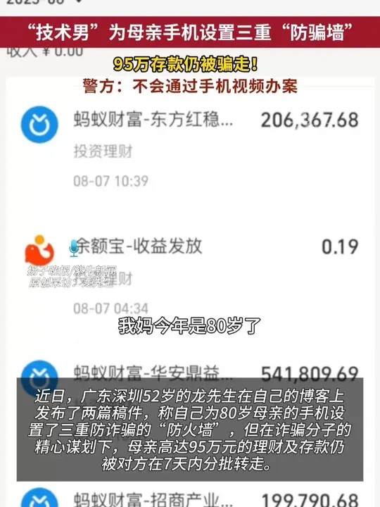 “技术男”为母亲手机设置三重“防骗墙”,95万存款仍被骗走! 警方:不会通过手机视频办案