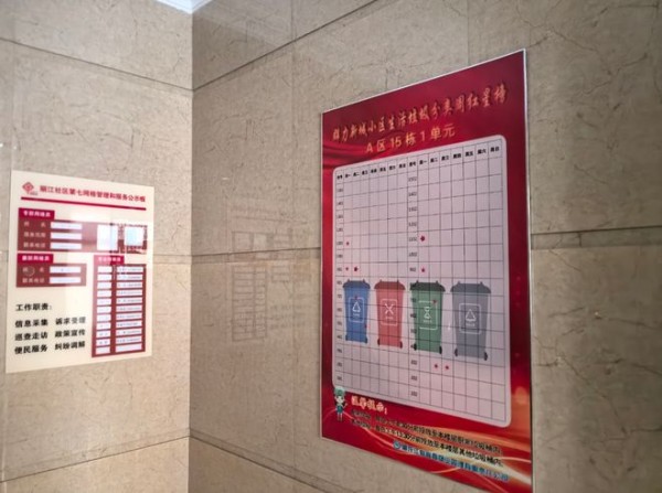 群力新城小区现有居民8760户,约2万人。后台数据显示,该小区中获得积分最高的家庭每个月大约能攒超过3000积分,一般的家庭在2000积分左右,换购商品和服务大约相当于二三十元钱。为强化督促提醒,该设备运营公司联合社区在每栋单元楼进户门厅墙面上设置了垃圾分类红星榜,对表现优秀的业主给予表扬激励。