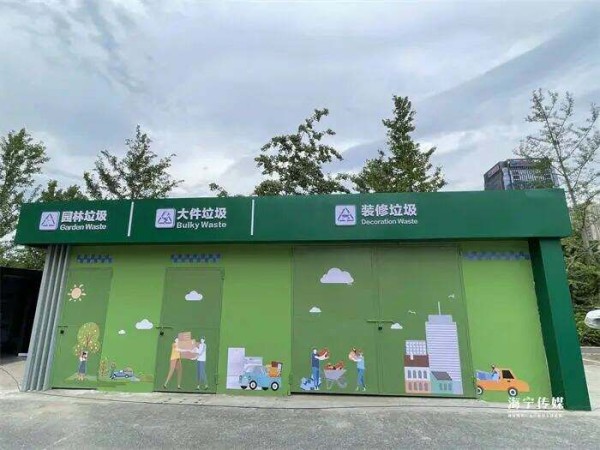 来到这个大件垃圾房,记者看到这个垃圾房整体绿色,设置有三个门,分别印有园林垃圾、大件垃圾、装修垃圾的标识,门上采用彩绘喷涂,垃圾分类的温馨场景更给垃圾房增添靓丽色彩。