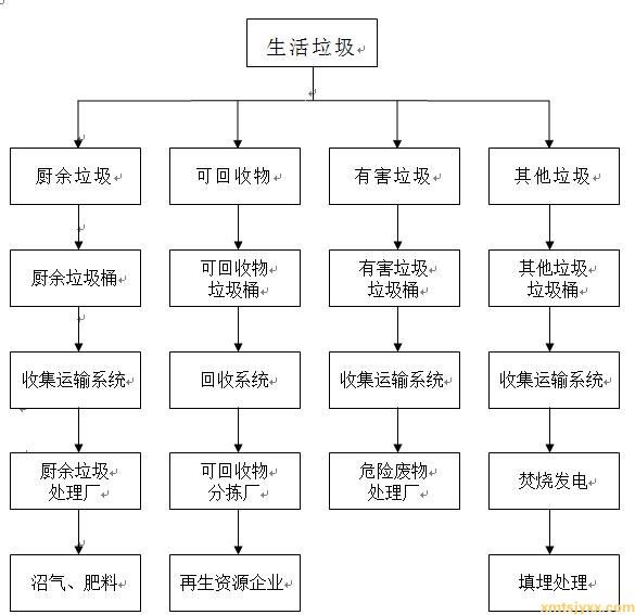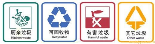 5.4.1一般分为厨余垃圾、可回收物、有害垃圾、其他垃圾四类,设置“四类”投放桶。