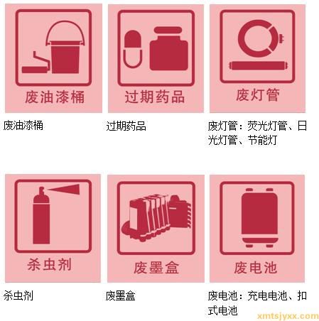 主要包括:废弃的充电电池、扣式电池、荧光灯管(日光灯管、节能灯等)、温度计、血压计、过期药品、杀虫剂、胶片及相纸、废油漆、溶剂及包装物等。