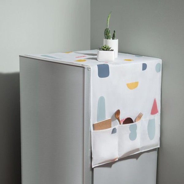 冰箱上的收纳当然不止在里面了,也可以在外面,这样的防尘罩不仅能帮助到冰箱防尘防水,还有收纳袋的设计。不只是防尘防水布,一款棉麻不易冰箱防尘罩,简约之中又见细节,更有多种的尺寸和风格设计,美观又实用。厨房总有些小东西不好摆放,这款冰箱挂袋,既能防止冰箱落灰又能放很多东西