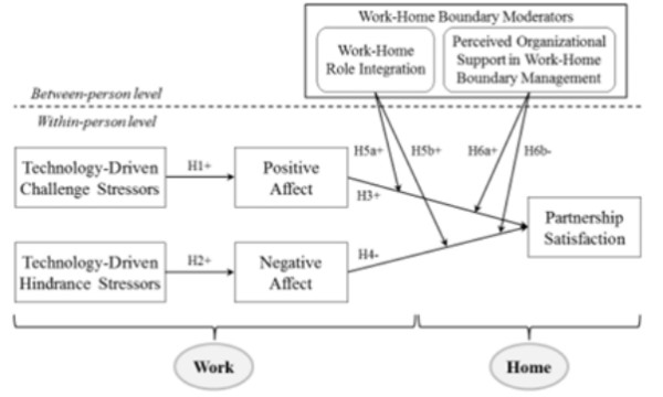 现代职场中,信息及通信技术(information and communication technology, ICT)无处不在,它让工作更高效,但也带来了新的压力(Technology-driven stressors)。电脑死机、邮件延迟、软件崩溃、突如其来的视频会议……结束一天的工作后,你是否常常感到精疲力竭,甚至把烦躁情绪带回家?第二天,你是否又曾因为掌握了一项新技术技能而充满干劲,让家人也感受到你的好心情?职场信息及通信技术的使用可能正悄悄改变着我们的情绪,进而影响家庭关系。本期文章《A Daily Field Investigation of Technology-Driven Spillovers from Work to Home》对115名员工进行了为期两周的每日调查以探究工作中经历的日常挑战型技术压力源(Technology-driven challenge stressors)和阻碍型技术压力源(Technology-driven hindrance stressors)如何以及为何影响员工与家庭伴侣之间的关系。