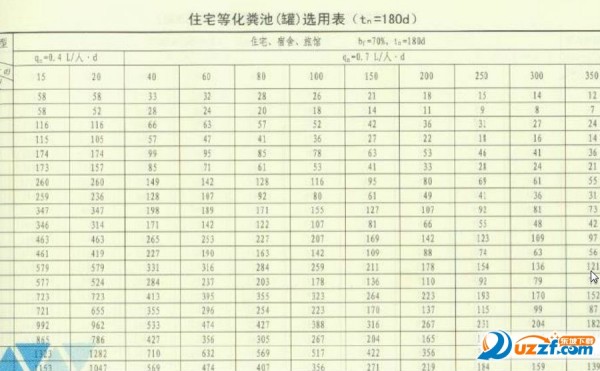 职工食堂等化粪池(罐)选用表(tn=180d)20