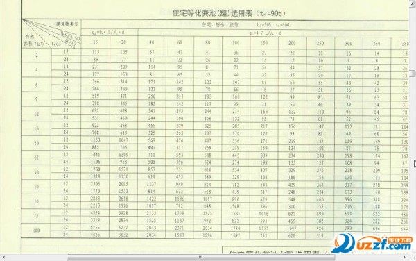职工食堂等化粪池(罐)选用表(tn=90d)19