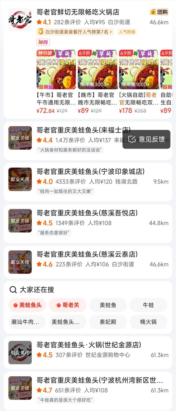 这家著名的火锅店在宁波市区全部关门了,不可思议 很久没有吃“哥老官火锅”了,跟着朋友去来福士本来打算吃这个火锅,没想到发现竟然关门了,美团上看了一下