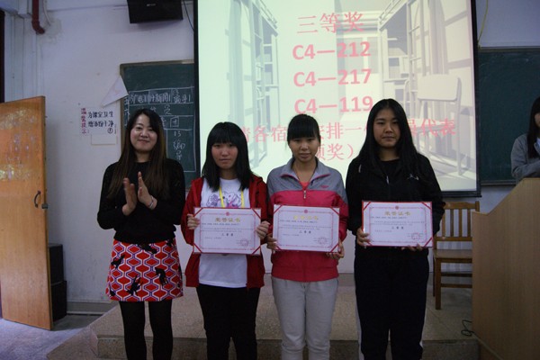 通过这次比赛,让同学们更加注重平常生活中的细节,更加注重宿舍的卫生,促使同学们自觉创立良好的宿舍生活环境,从而更好地在大学里生活、学习。