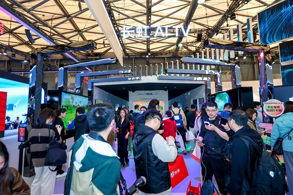 人潮涌动的长虹展区,新产品、新科技、新场景、新体验吸引展会参观者流连忘返,全面AI化的生活在这里触手可及。