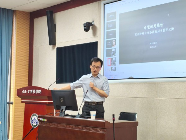 本网讯(通讯员 毕建伟)4月17日上午,华中科技大学哲学学院洪亮教授在武汉大学哲学学院B214报告厅进行了题为“希望的超越性:莫尔特曼与布洛赫的历史哲学之辩”的讲座。本场讲座由武汉大学哲学学院、武汉大学德国哲学研究所、武汉大学欧美宗教文化研究所联合主办,系“珞珈德国哲学讲坛”系列讲座第18讲。讲座由哲学学院外国哲学教研室王咏诗副教授主持,杨云飞教授担任评议人,中国社会科学院世界宗教研究所助理研究员王旭与70余位师生列席参与。