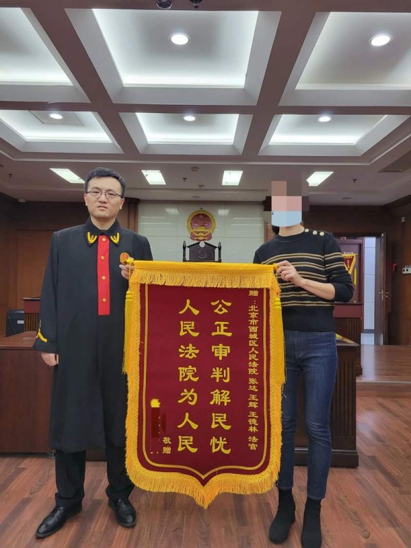 魏女士向法官团队送去锦旗。 图源:北京市西城区人民法院