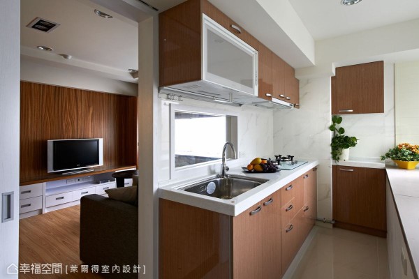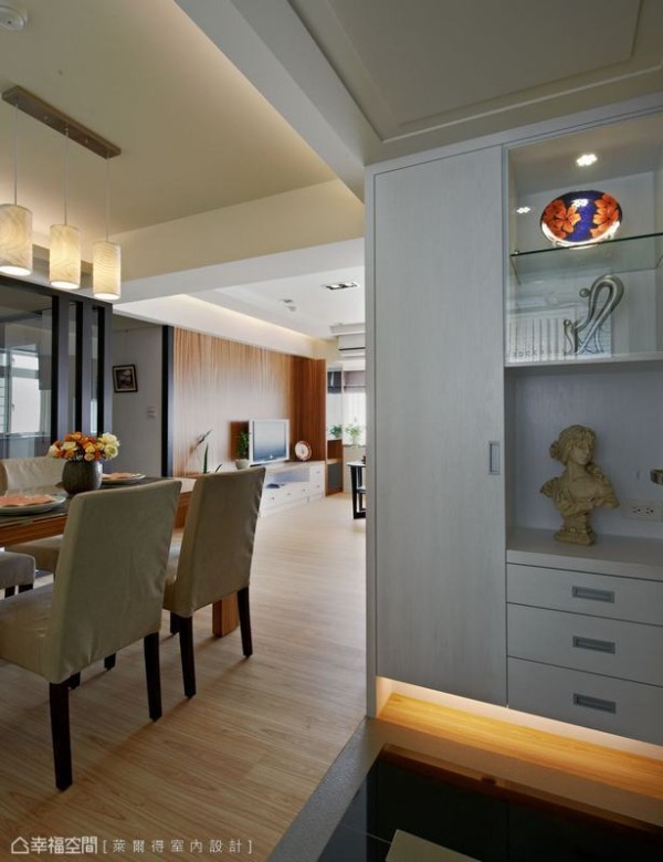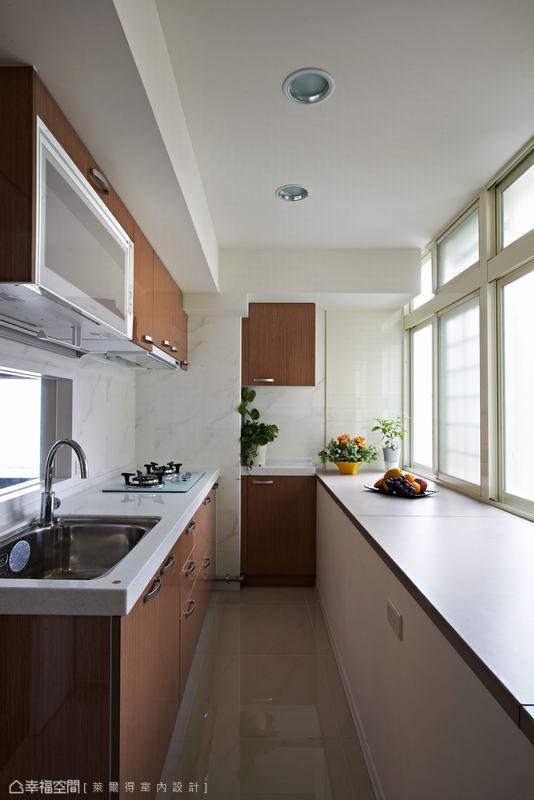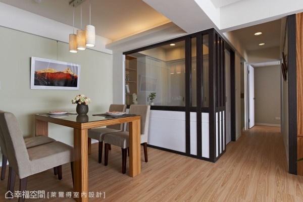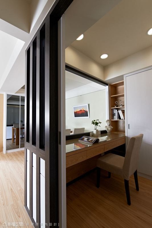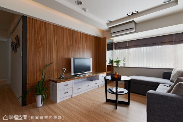 三十年的老屋原為辦公室空間,不僅只有兩房一衛機能規劃,還有壁癌、漏水與通風不良問題,設計師吳東欣權衡居住人口需求改以二加一房,讓生活有了段落性的完善,而動線調整中也擷取下最大採光面,創造明亮舒適感。 另外,工法運用上萊爾得設計以傳統的木工施作為主,考量到居住者的健康,特別在木作表面噴以光觸媒,減低甲醛帶來的健康傷害,而客廳與主臥部份則施以珪璪土建材,調節空氣濕度同時減少過敏源,落實打造健康宅。