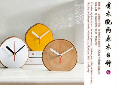 创意原木台钟 现代简约卧室客厅时尚饰品挂件