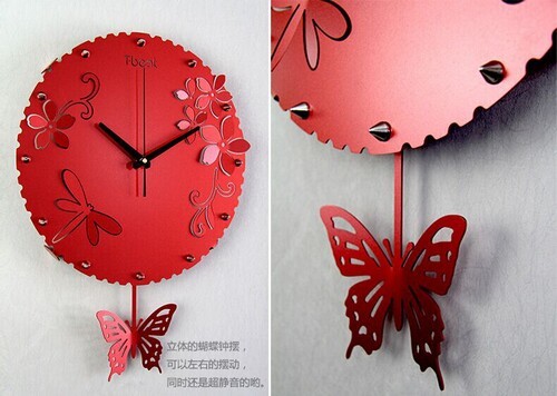 简约而不简单,最能诠释这款挂钟的含义,金属加镂空的效果,让蜻蜓与花朵在钟面交相辉映,蝴蝶钟摆更加增添了整个钟的动态美。