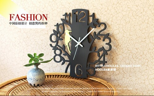 静音挂钟客厅数字艺术挂表时尚钟表创意时钟14寸小鸟