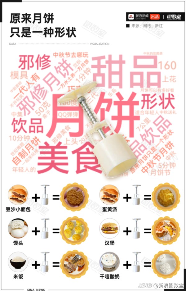 不仅如此,年轻人开始在家把汉堡、蛋黄派塞进模具,“万物皆可月饼”的DIY风潮席卷社交网络。