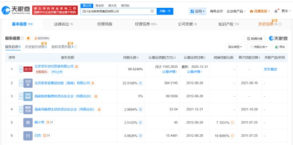 近日,四川生活家家居集团有限公司迎来重大工商变动,据天眼查信息显示,该公司新增了一位重量级股东——北京京东世纪贸易有限公司,持股比例高达约66.6%。此次变动不仅带来了股权结构的调整,还促使四川生活家家居集团的注册资本从约1054万人民币增加至约1791万人民币。