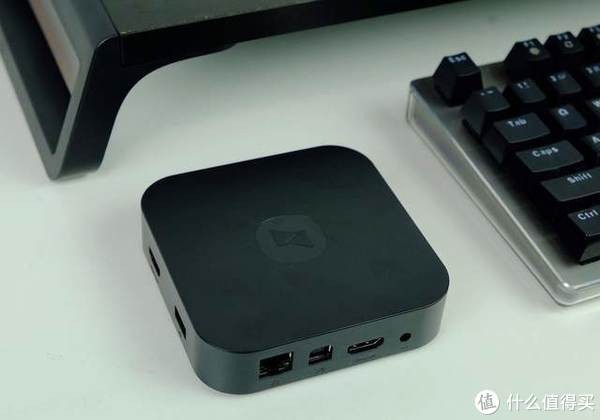 产品尺寸挺小的,和家用的电视盒子类似,中间有一个大大的向日葵产品LOGO,迷你的机身设计也让设备可以使用的场景更多,不会占用太大的空间。