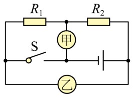 【推荐1】如图所示电路中,已知电阻R1∶R2=1∶3.如果甲、乙两电表都为电压表时,闭合开关,此时两电表的示数之比为