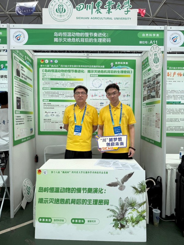5月24日至26日,由团委联合省委组织部、教育厅、科技厅、人力资源社会保障厅、省科协、省社科院、省学联等单位共同主办的第十八届“挑战杯”四川省大学生课外学术科技作品竞赛终审决赛在成都医学院隆重举行。学院《油茶全副产物多糖的低共熔溶剂提取及其活性评价》《岛屿恒温动物的慢节奏进化:揭示灭绝危机背后的生理密码》2支参赛团队荣获自然科学类学术论文赛道特等奖,实现了学院在该赛事中的历史性突破,也是我校本届省赛唯二的自然科学类特等奖作品。